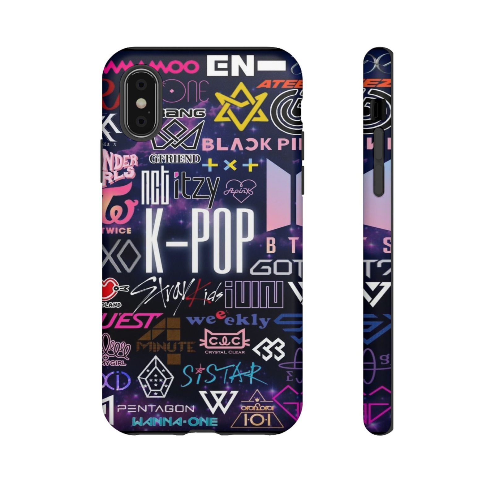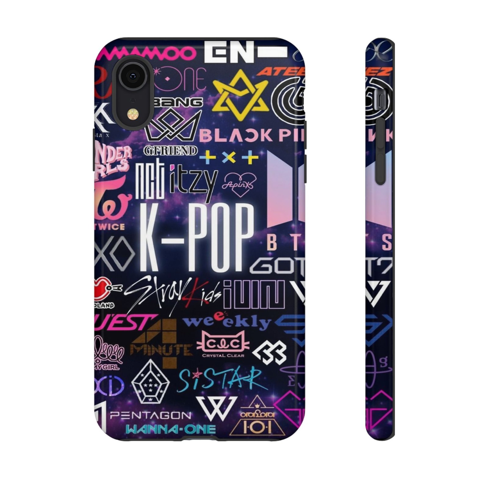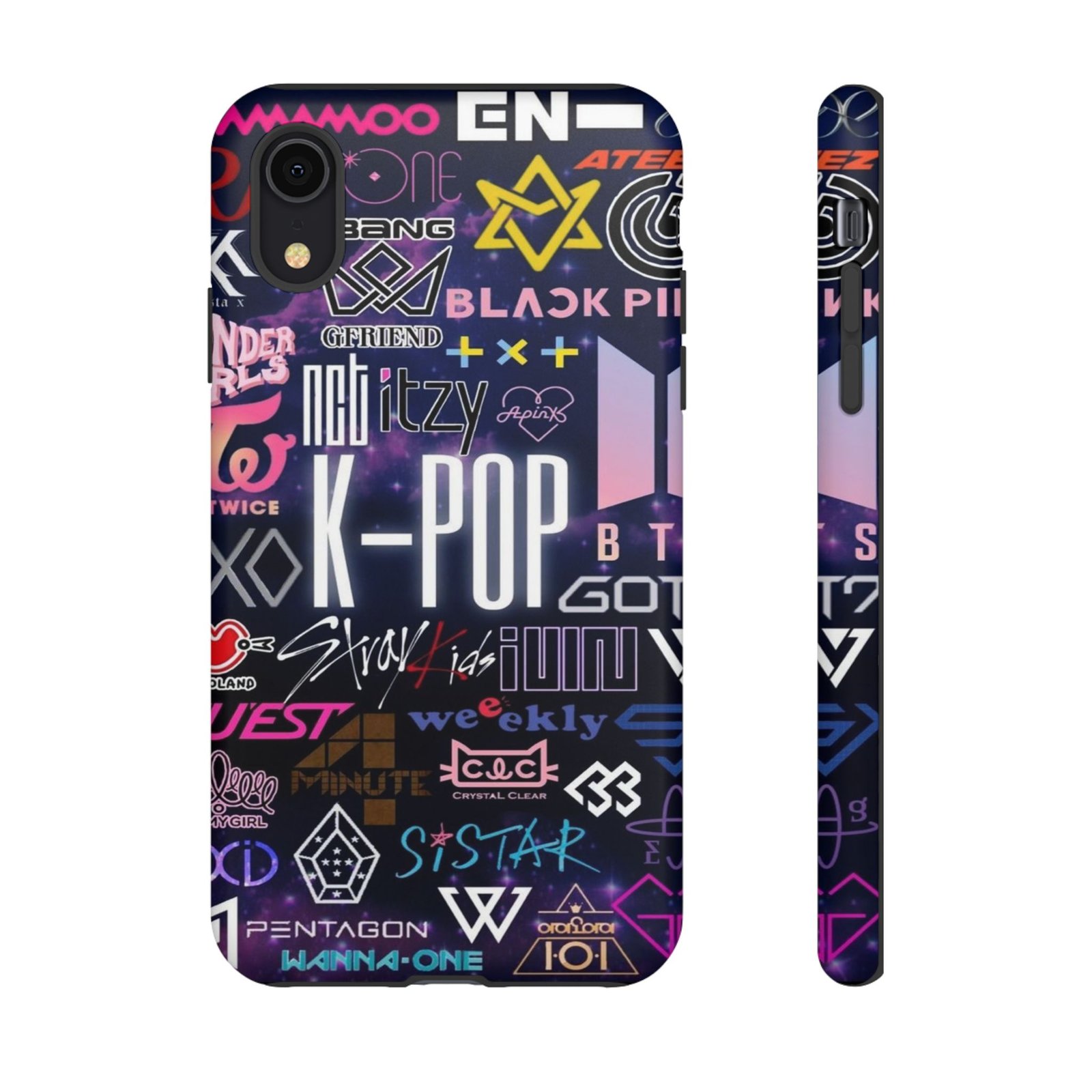 Showcase your love for K-Pop with this vibrant and stylish phone case designed for fans of the genre. The design features an array of popular group logos, creating a bold statement that resonates with fellow enthusiasts. It’s perfect for those who live and breathe K-Pop culture, making it a great accessory to express individuality and fandom. This phone case brings a fun and vibrant vibe, ensuring your device stands out while staying protected. Ideal for birthdays, holidays, or as a thoughtful gift for your fellow K-Pop fans or casual listeners alike; it’s an excellent addition to anyone’s collection of fandom merchandise!