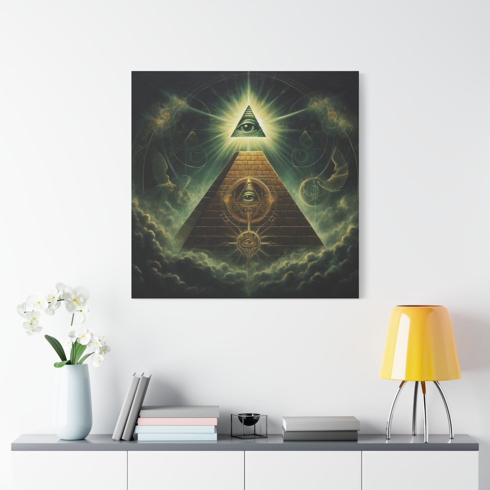 Mystical Pyramid Canvas Art Print, Boho Wall Decor, Spiritual Home Decor, Unique Gift for New Age Lovers, Eye of Providence Artwork, Alchemy