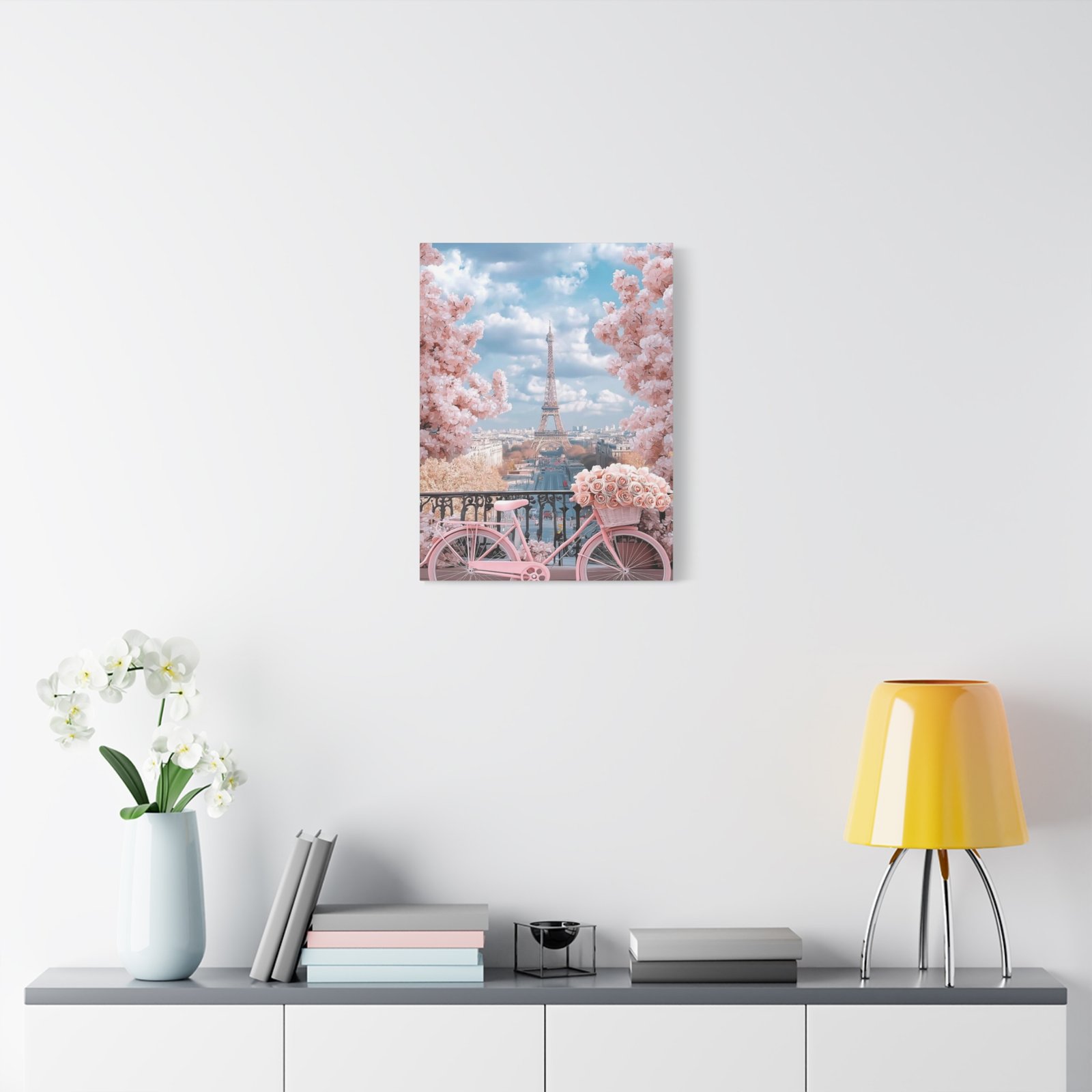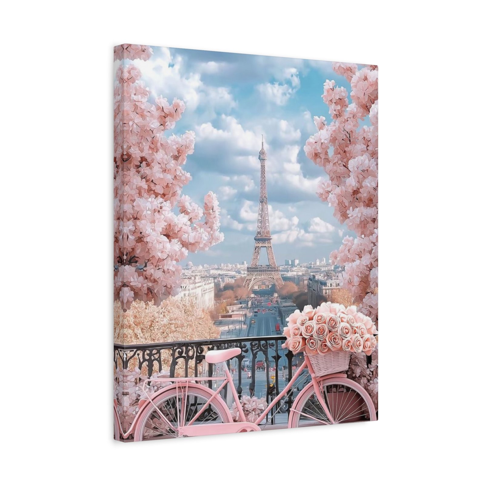 Bring a touch of elegance and charm to your home with this stunning canvas art piece. Featuring a picturesque scene of a pink bicycle surrounded by blooming flowers and the iconic Eiffel Tower in the background, this canvas effortlessly elevates your space. Its vibrant colors and detailed design create a warm and inviting atmosphere, making it a perfect addition to any room. Ideal for those who appreciate beauty and a hint of romance, this artwork speaks to lovers of travel, France, and stunning visuals. Perfect for gifting during holidays, housewarmings, or celebrations of love and friendship, it’s sure to be a conversation starter in any setting.