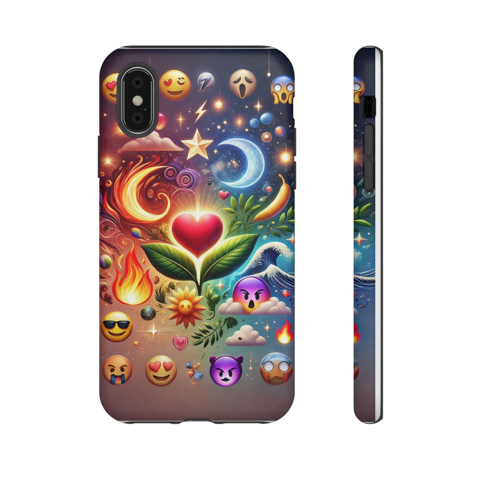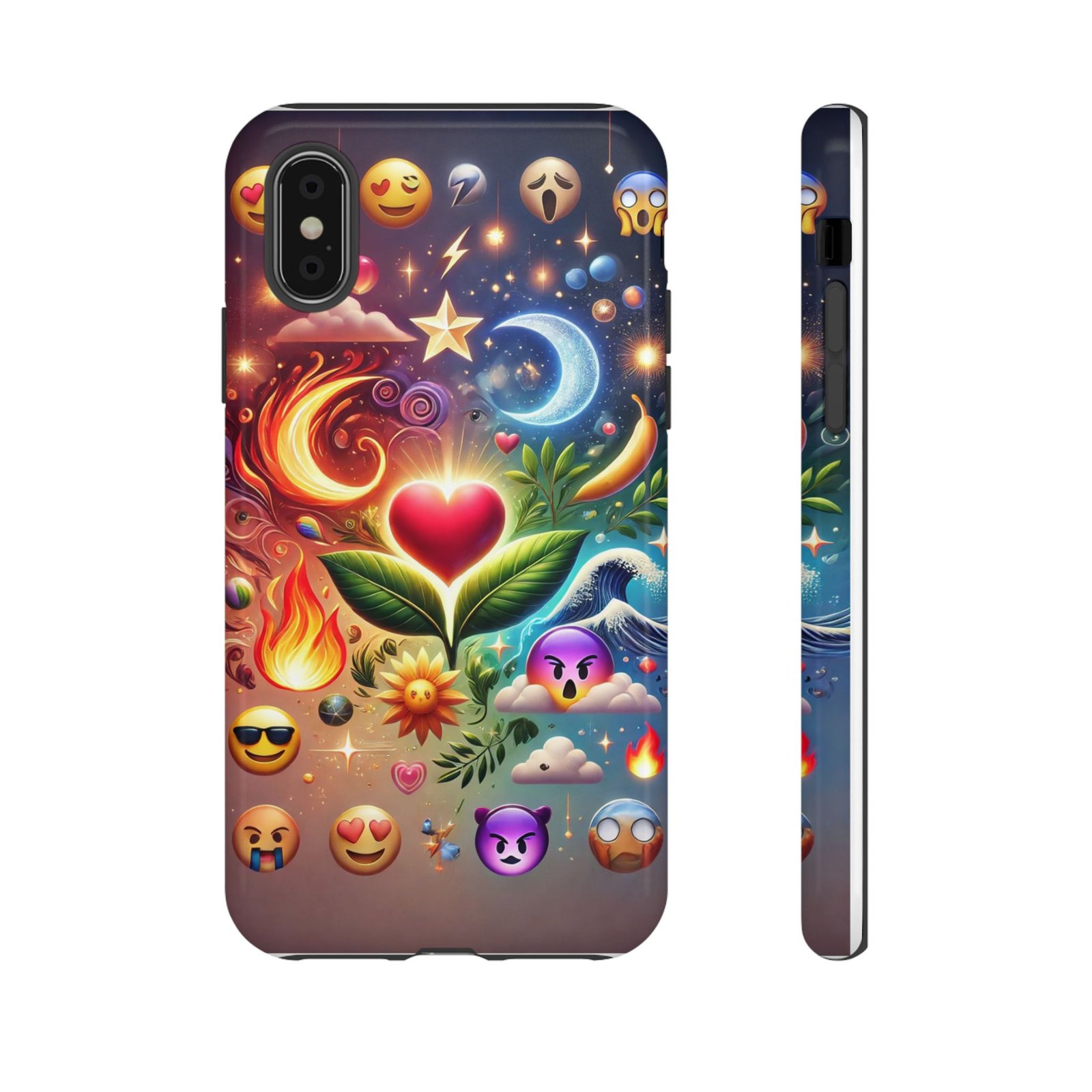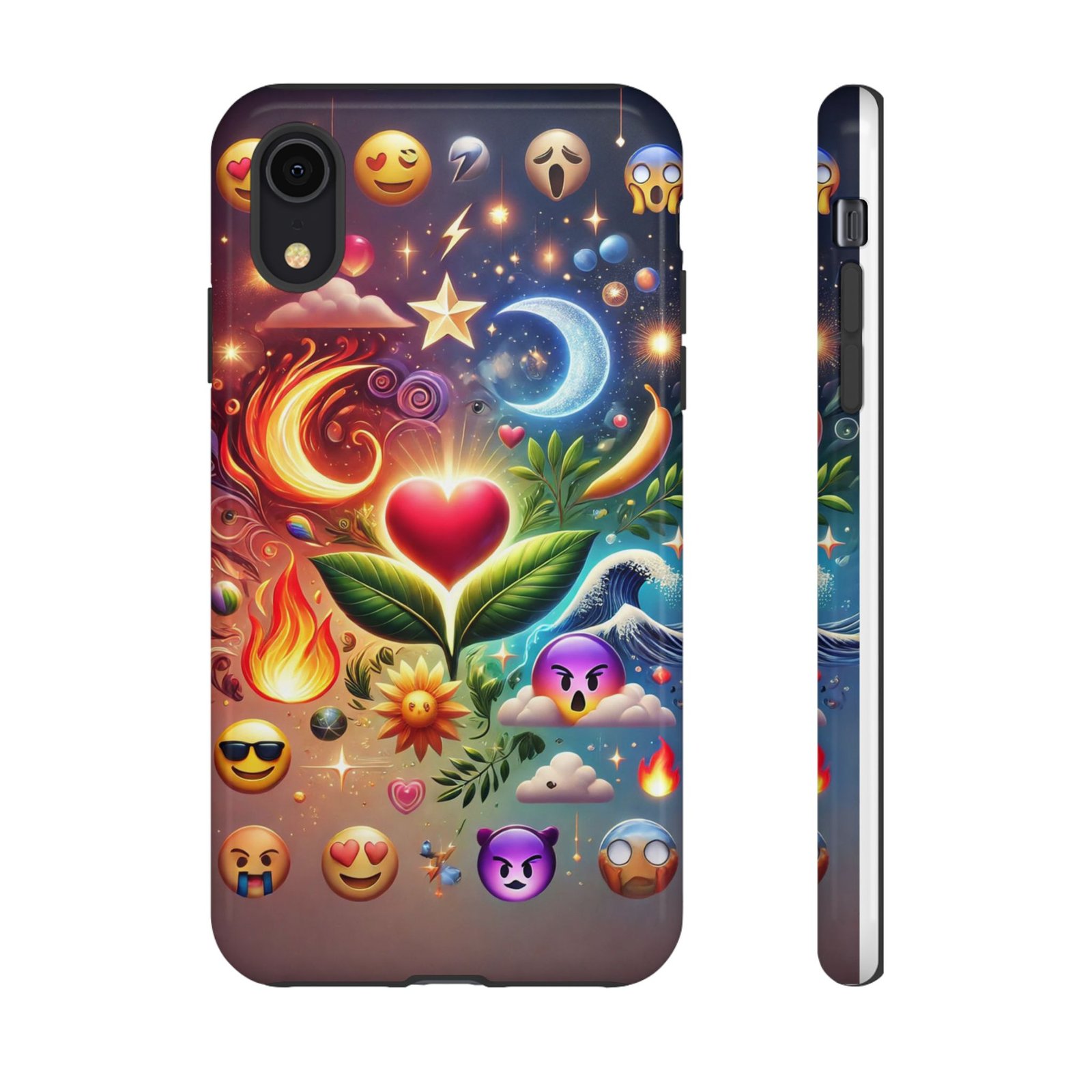 Introducing our vibrant **Phone Case**, designed to bring a splash of color and personality to your daily life. Featuring a stunning mix of emojis, nature motifs, and celestial elements, this phone case radiates positivity and creativity. It’s perfect for those who love to express themselves through unique accessories.